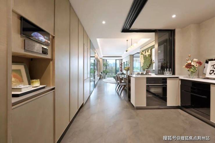 105㎡的一个很大优势是内部各功能区主卧、次卧以及包了阳台后的餐客厅的尺度。可以说这个105㎡真的是哪个房间都不挤。不仅餐厅、客厅形成了两个很完整的厅,厨房的南侧格挡做成了类岛台的设计,也使得餐客厨的空间更互动。