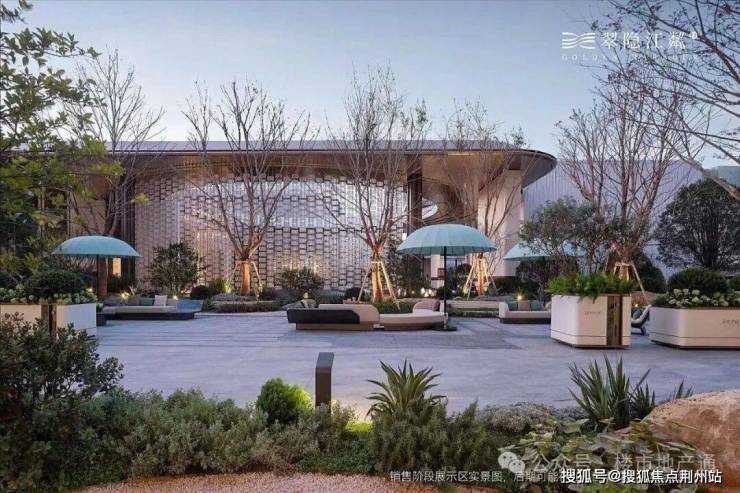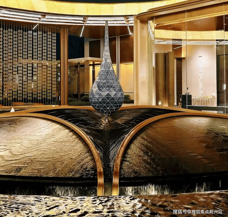 进入序厅,是一条「艺术回廊」,自带1100方下沉式庭院,以叠水、卡座、花坛打造立体花园,宽屏巨幕玻璃十分通透