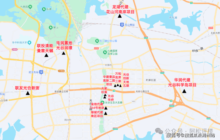 3、光谷润璟(荷叶山项目)——光谷核心东部边界,近光谷中央公园,但靠近三环、高铁、垃圾中转站等,位置相对闭塞
