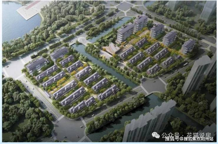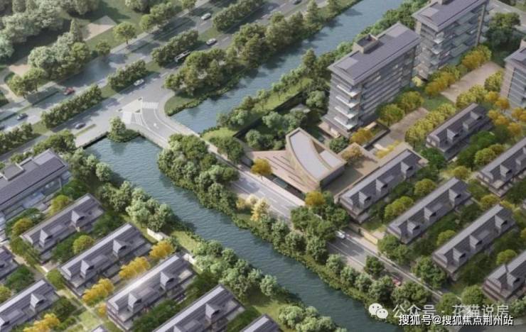 从规划效果图看,整个项目的风格偏现代中式,内部绿化率很高,在两个地块的中间,以及东地块的北侧,都有水系景观河。另外在东地块西侧入口,规划有类似会所的建筑(具体信息等开发商公布)。
