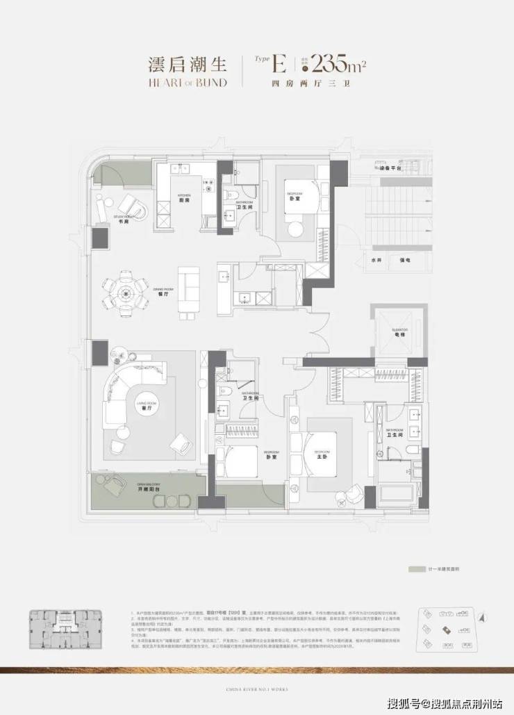 KING235 作为此次四批次全景舱大宅的重磅之作,雄踞社区 9 栋围合式布局的正中央核心位置,是当之无愧的滨江王座。