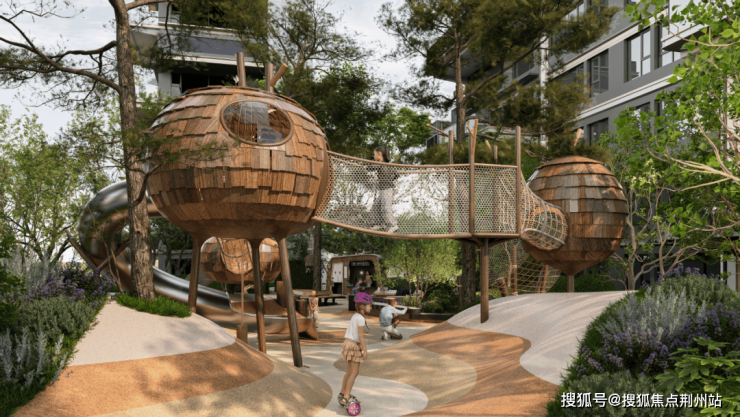 下沉庭院、达尔文营地,与南侧超级界面、森屿会客厅、多巴胺主题乐活聚场一起构成了项目“一轴四境五园”的景观体系,所营造出的“鎏泉萃境,都会森屿”的园林意境,与济南泉水“隐于地、显于形、融于城”的山水特质深刻呼应。