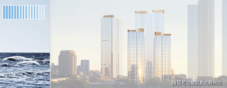 项目从流水中迸发灵感,立面积聚波纹之力,以微弧的波浪元素转移成建筑语言,强化建筑的特征性与在地性。公建化的立面形象,品质感的精工考究,延续二七滨江豪宅的价值感。