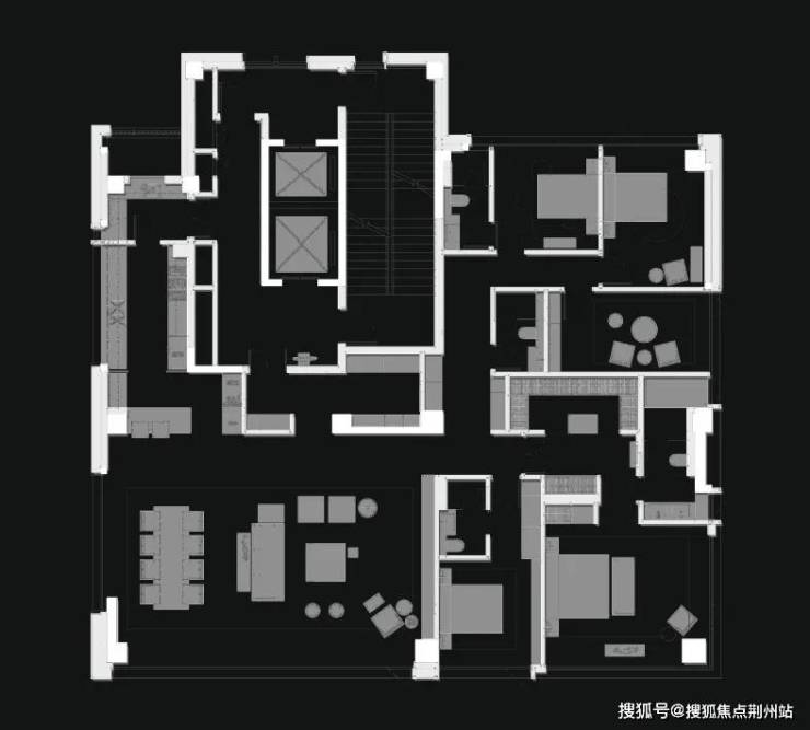 整个户型空间布局为4房4卫,三个大套房,每位家庭成员都能拥有自己的独立空间。