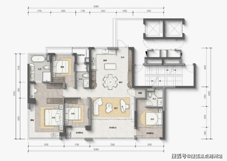 杭州绿城·月映金沙的178㎡户型,凭借抬地优势实现了3.1米层高,搭配270度转角飘窗,让室内空间更显开阔通透。