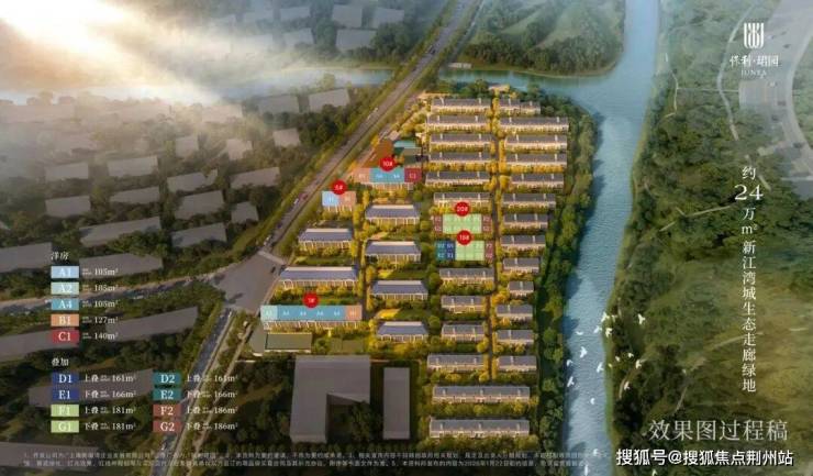 第二大亮点:项目东北两侧被湿地包裹,形成了“双湾环抱-对望湿地-内有庄园”的生活体验。整体采取了东高西低的策略,使前排建筑不遮挡后排视野,超过半数楼栋可享受水系与公园景致。