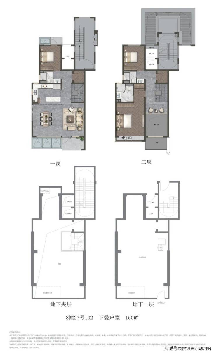 建面约150㎡下叠,一楼餐客横厅连通独立前庭,局部挑高设计,铺陈生活的礼序;二楼独立套房设计,三大卧室空间,三代同堂也能互不干扰。地下室约5.65米挑高,收藏时光馈赠的美好记忆。