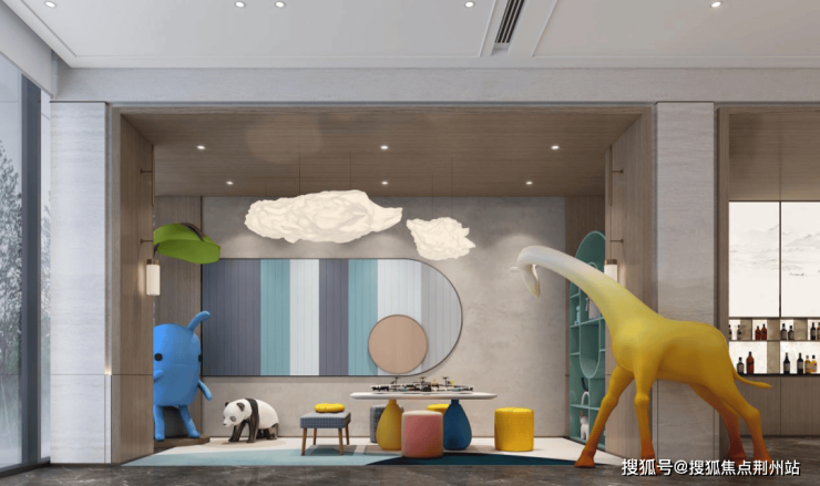 儿童区是空间的重要补充,将自然元素、互动体验与安全功能深度融合。旨在打破传统儿童区“单纯看护”的局限,打造集亲子互动、自然启蒙、益智娱乐于一体的成长型空间,让儿童在空间获得沉浸式的体验,同时让家长在洽谈过程中无后顾之忧,传递项目对家庭生活的人文关怀。