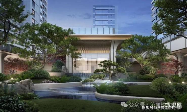 归家仪式院:云缦之庭,层叠映趣,立体山水;中庭鎏光水院:星云水瀑,四季园景,内外交融。