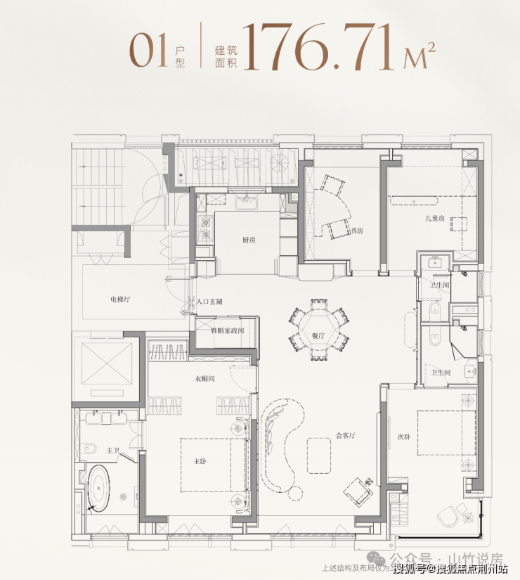 而建面约177㎡01室,则针对性地打造为4房格局,精准契合二胎家庭或三代同堂需求。