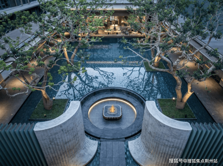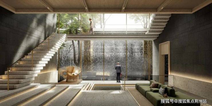 社区精心打造约6.5米深的下沉式“峡谷瀑林”庭院,以“城市山林”为构想,用约400吨天然景石精心垒砌成峰,搭配潺潺流水与葱郁植被,力求呈现“虽由人作,宛自天开”的自然意境,恍如置身世外桃源,带来超现实的沉浸体验。