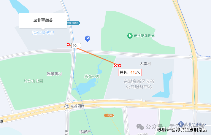 深业翠微谷斜对面就是东湖高新区政务中心,这里是东湖高新区的封面,是光谷创新之基、活力之源,也是光谷发展的定心丸。