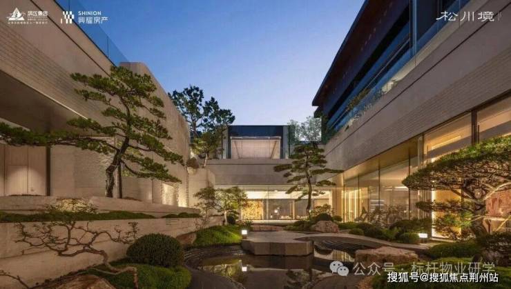 约3300平方米的中央景观,下沉式庭院与双水院景观错落有致,将《松阁观潮图》、《溪山行旅图》、《山亭文会图》三幅宋代古画,巧妙融入松川境的立体山水之中。高层与排屋区之间,一条长约210米的中轴景观横贯东西,串联起「松川十一境」的雅致画卷。该项目景观设计由北京顺景园林执笔。