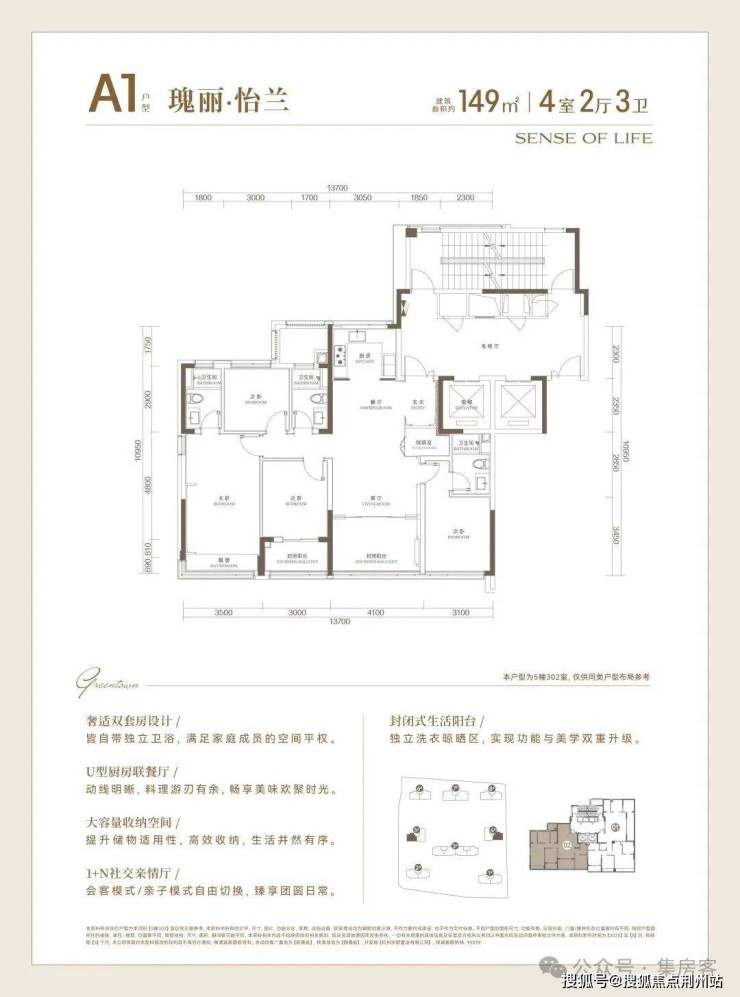 全盘两梯两户配置,标准层层高约3.1米,经典的改善盘骨相。最亮眼的,莫过于建面约149㎡主力户型,四开间朝南+南向双套房+独立储藏室,所有卧室与卫生间皆以最短动线布局,让每一厘米都服务于生活。它也是奥体在售仅有的149㎡入门级改善四房,堪称实用度和流通性的年度明星!