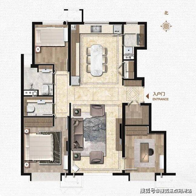 另外,在这个“真香户型”中,还能看到情景式入户玄关、乾坤储藏间,兼具了全家的大收纳功能。