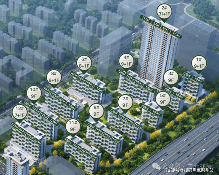 其他的洋房,层高为8-10F,1梯2户,均为107㎡和128㎡的户型,一户一花园。