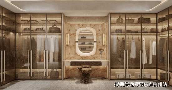 约8.9m超大面宽,远超市场常规主卧尺度。男女独立双衣帽间,男士的西装、腕表,女士的礼服、包包、珠宝,均可分类收纳,既保障了私域的整洁,更彰显了对等尊重的生活理念。