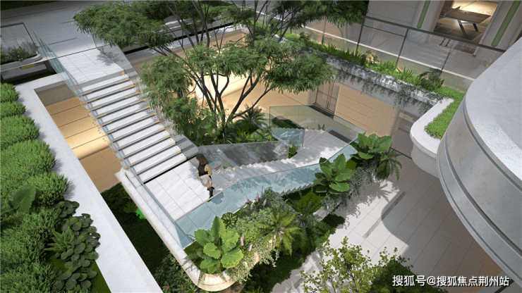 更重要的是,这种“盆地”“空中花园”设计,与住宅的大面积落地玻璃、观景视野巧妙形成了呼应。