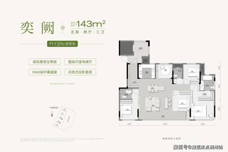 143㎡五房:顶奢改善户型,五房三卫适配多代同堂,大横厅+专梯入户,尺度堪比大平层。