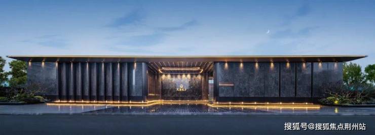 曲线屋面下,是8根玉树形飞檐门柱对称相应,镜面水景倒映出柱廊与飞檐的虚实景致,营造出极具艺术感的奢华空间。