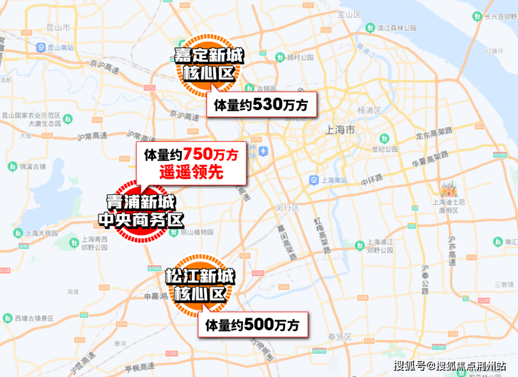 对比一下嘉定新城约530万方,松江新城约500万方的中央商务区,青浦新城中央商务区的能级和规模无疑都是更高的。