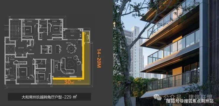 项目沿河布局229㎡户转角厅型,最大限度利用临水景观资源。居家的核心活动空间以通透的“阳光玻璃盒子”形态呈现,14~20m的南向面宽让阳光充盈室内,L 形观景阳台约 30㎡,在空间与景观的延展中,将河景、光影与生活融为一体。