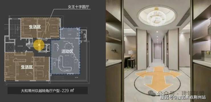 女王十字圆厅以十字轴交汇的空间结构为核心,通过中心节点的组织,实现活动区与生活区的自然衔接与自由转换,也为家庭生活营造出具有仪式感的核心场域。