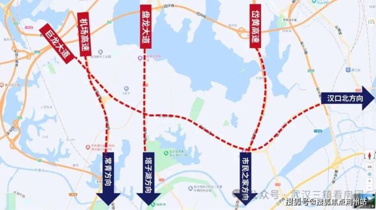 三纵一横路网 ,迅达武汉三镇核心开车走机场高速到达菱角湖万达商圈、武广商圈仅需15-20分钟,走盘龙大桥到达金银潭和金桥永旺、后湖汉广商圈也只要15-20分钟时间。