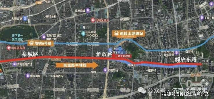 项目位于历下核心区,靠近历下区政府,交通配套有解放东路、工业南路、二环东高架、地铁6号线茂岭山路站,东侧是茂岭山公园,不远处还有全福河景观带、龙湖天街、万象城、省博等资源。