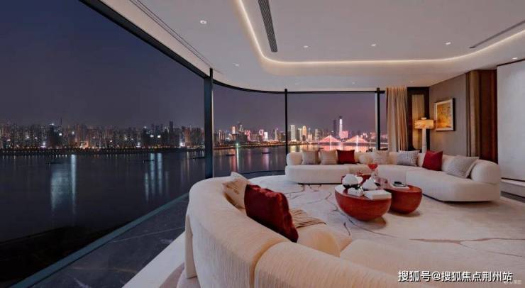 以360°纯粹环幕落地玻璃幕墙体系,搭配横向金属铝板线条造型以天空为幕,塑造长江自然起伏的流动天际线,赋予建筑丰富的动感与生命力。