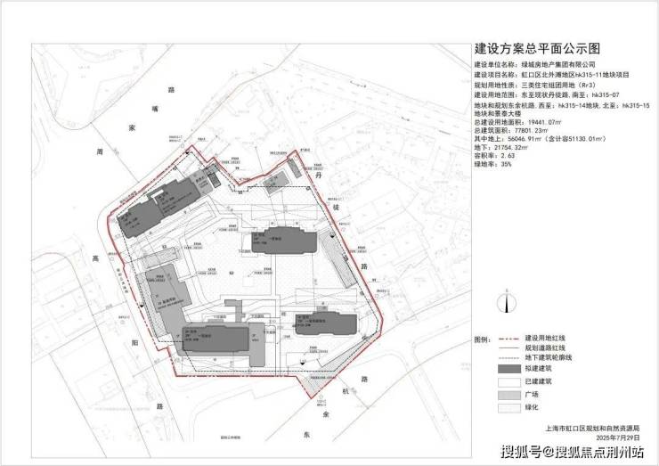 25年7月29日,北外滩地区hk315-11地块新建住宅项目设计方案公示;