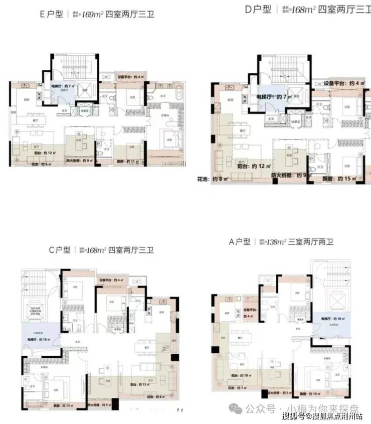 小区三期地块三栋楼组成确定都是第四代住宅产品。3号楼洋房在南,由北至南形成阶梯式退距,而高层在北,也保证了一定的采光。1、2号楼为31层高层,两梯两户设计,层高从3米增加到了3.1米。3号楼为11层洋房层高从3米2高.独立电梯厅入户。整个项目一共是150套房源,所以我判断,一层全部架空,户型就3种户型,1号楼建面约138㎡三房两厅两卫,一共60套,2号楼建面约168㎡四房两厅三卫,共60套,3号楼建面约168平四房两厅三卫共30套