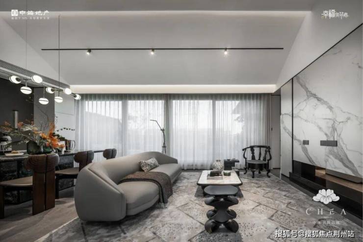 2.【东方意】汲取东方的建筑美学灵感,以当代的方式表达东方文化,大坡顶与小坡顶结合,瓦片材质与金属钩边进行铺装,建筑装饰点缀了橡木灰金属材质,演绎出低调的奢华与诗意江南的当代回归