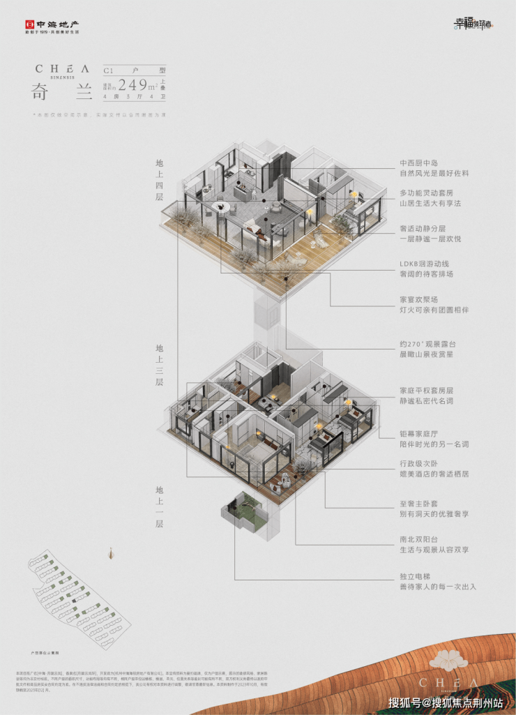 3.【十级院落向阳而立】内部台地与外部市政道路有约3-5米高差,局部高差更达7-8米,打造拾级而上的尊贵归家仪式感;大部分后排房屋相比前排地势高,楼栋排布向阳起逐级起伏,最大程度获得日照采光