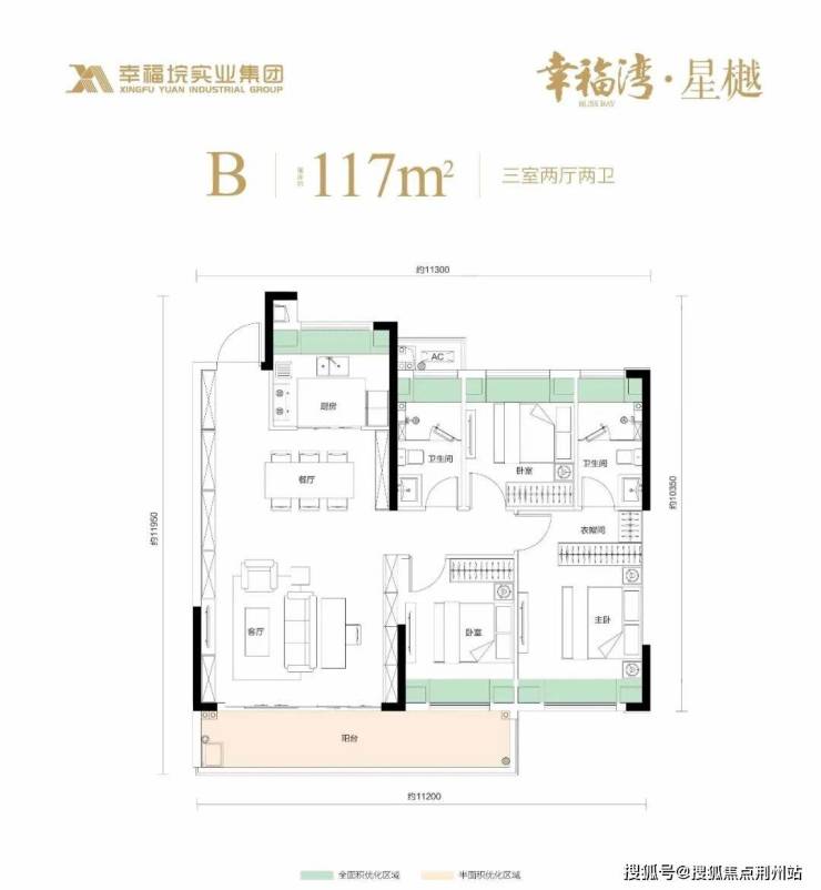 这是星樾建面约117平的三房两卫,3+1的百变空间乃神来之笔。