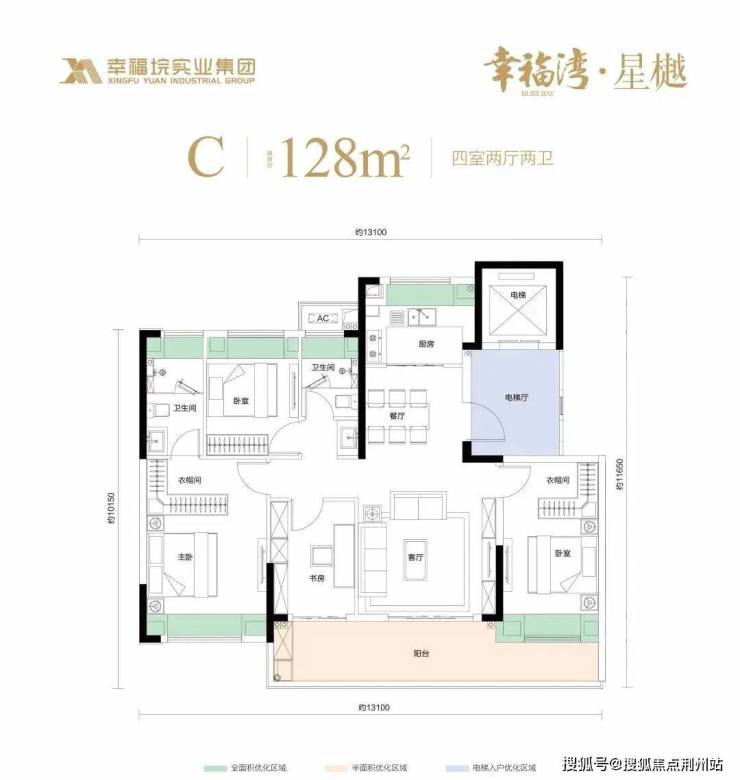 这是星樾建面约128平的四房两卫,尺度感,真的无敌了。