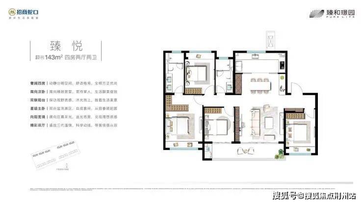 招商臻和璟园,打造8-11F洋房,容积率1.6,270户,128㎡、143㎡四房两厅两卫户型备案价约37871元/㎡,总价约485万起。