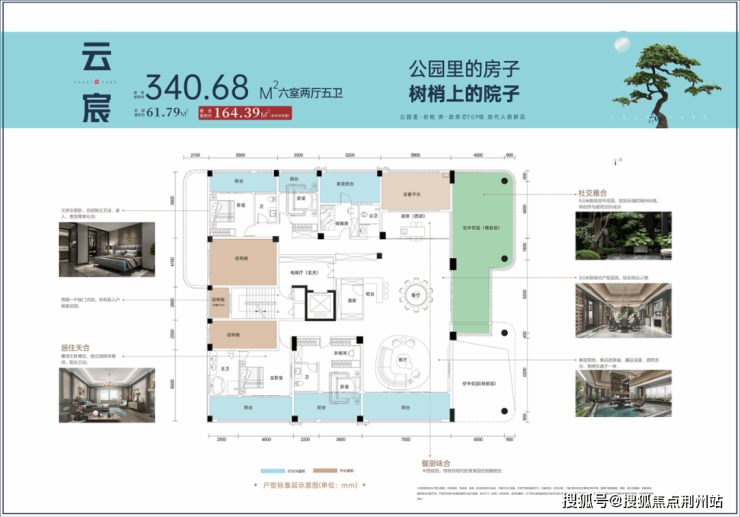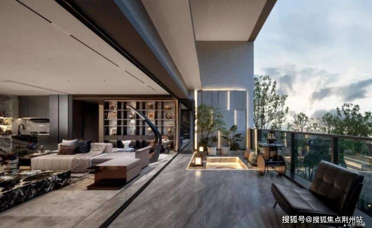 再比如中海在南京的 “四代宅住宅 4.0” 产品,突破传统单层客厅的限制,采用约6.6米挑高墅厅设计,增强了户内纵向空间感,每户还配有约20-30㎡的空中露台,将别墅特有的庭院生活融入了大平层。