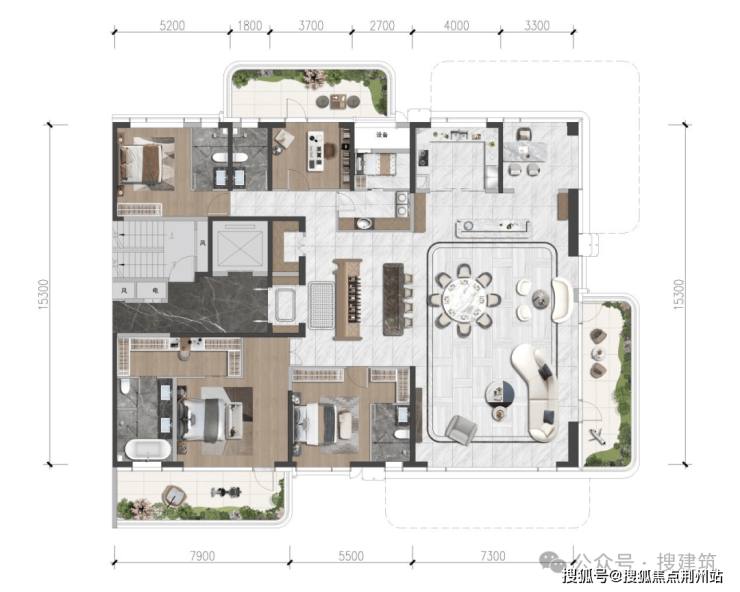 1、本期搜建筑为大家解读6种常见的露台布置形式及其优缺点分析