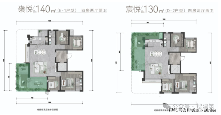 1、南北双露台布局:根据不同的朝向、位置、面积、连接空间,赋予其不同的专属功能。如客厅外主露台可作为会客、休闲、观景、家庭活动等核心功能区;餐厅/厨房外次露台可能连接操作阳台或小花园,方便处理食材、小憩或作为服务阳台(晾晒、设备)。
