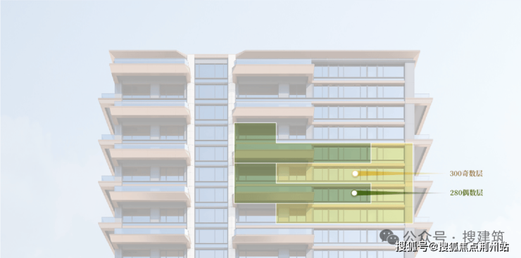 2、缺点:会导致损失一些使用面积,6米通高的玻璃幕墙冬季热损失高,而且悬挑露台+双层通高使倾覆力激增。严寒地区和刚需项目需谨慎。