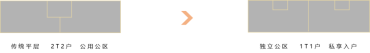 融合了大平层的横向尺度及别墅的垂直尺度,同时兼容两种产品的优势,这样一来无论是空间感、采光问题还有隐私保护,得到了完美解决。