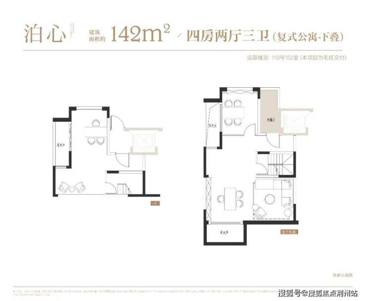 1套建面约142㎡下叠,地上两层、地下两层,毛坯总价1332万