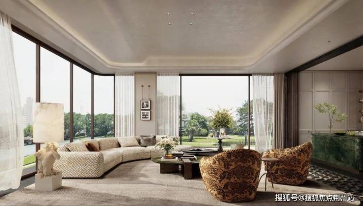 再回到福斯特的那句话:“通过窗户能看到什么,决定了房子的价值。”透过御江帝景一楼客厅的270°落地玻璃环幕你能看到什么呢?错落有致、四季花开的园林绿化,流光溢彩、简约精致的建筑立面,高贵典雅、中西合璧的海派风韵,花间雅座、谈笑鸿儒的松弛生活……