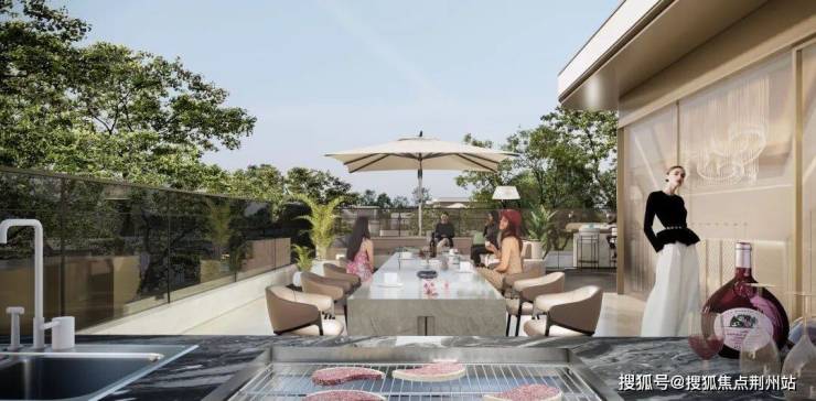 让我们将视野从一楼客厅升格到御江帝景的私享时光屋顶花园。从设计图稿中,我们可以看到,区别于一般排屋别墅项目的“斜屋顶”和中小露台设计,它采用的是大尺度“平屋顶”设计,从而让业主得以在此拥有360度宽境视界。