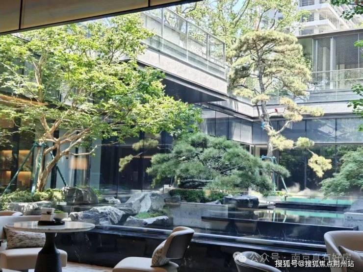 270°环绕落地窗,横向约10米IMAX级观景面,将涧谷庭、百年黑松纳入框景,晨昏光影透过重檐格栅洒落,复现北宋郭熙“可望可游”的立体山水画卷。