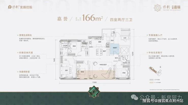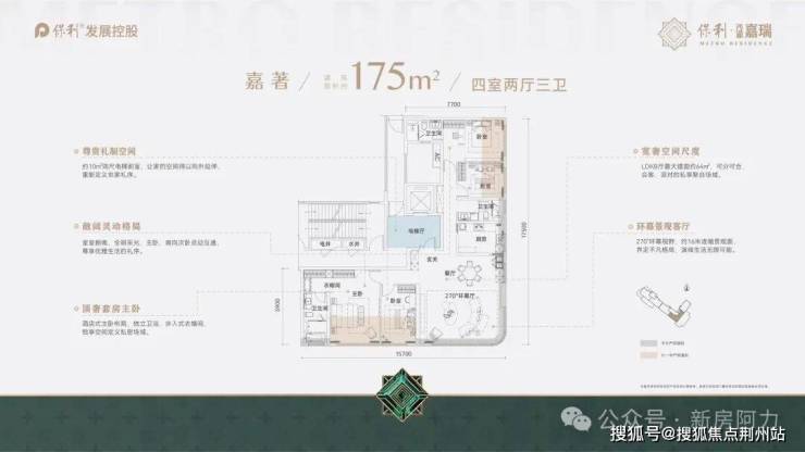 ▎规 模 总建筑面积约7.83万㎡(住宅2.5万㎡)▎产 品 建面为139、166、175㎡四房精装大宅