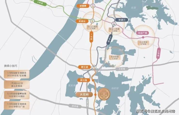 轨道交通形成了以地铁7号线为主干线,南北通贯直达武昌站,并与2、6、8号线交汇的四轨换乘体系。