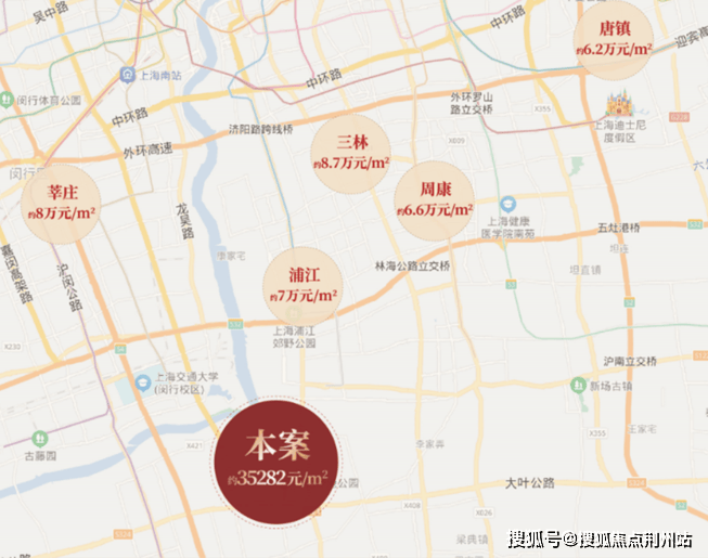 金融街·奉贤金悦府二期备案均价35282元/㎡,项目距离前滩、徐家汇、人民广场等主城节点都在40-60分钟车程左右,而房价却是周边浦江、莘庄板块50%都不到。