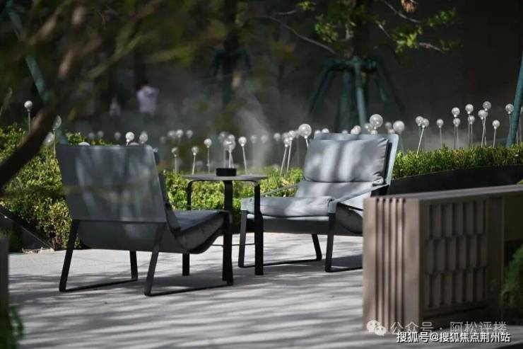 小区内随处可见休闲座椅,还配置了遮阳伞,细节到位。